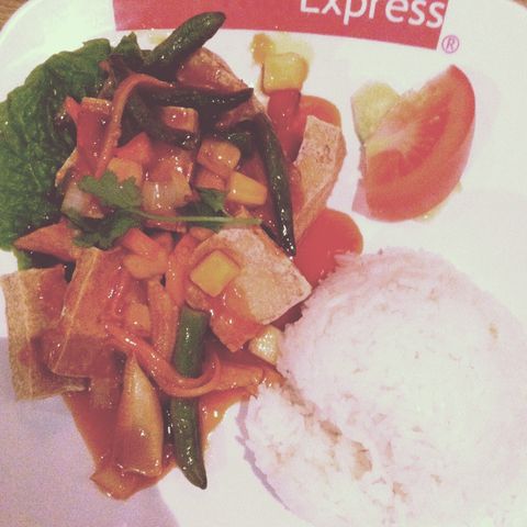 Anyway, today was the first time I had tofu. Strange perhaps, since I’ve been a vegetarian since 2006 (but not really anymore, even though I still dislike most meat). But I actually didn’t like the tofu. I can eat chicken instead.