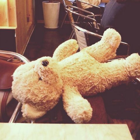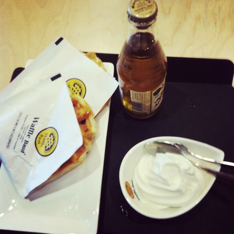 Today I met a guy. It was really nice weather, hoping it will last… We went to a waffle cafe, and it was really cheap and yummy! My friend won a teddy bear and other random stuff that he gave to me, so I had to carry around the teddy bear everywhere, heh…