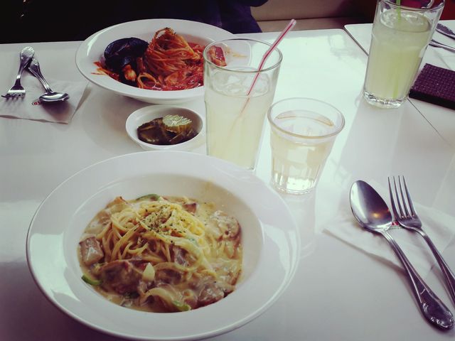 Picture two: Me and my roomie went to an Italian restaurant to eat. I had spaghetti carbonara (such a surprise – not) and she something from the ocean.