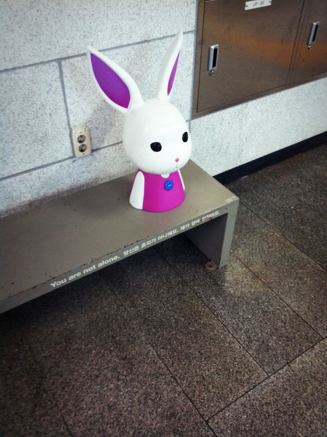 I wonder who the artist is! There is also a bigger rabbit in Sinchon, and the below rabbit is located in 시청, City Hall. They look cute but I guess they are part of the suicide prevention program.