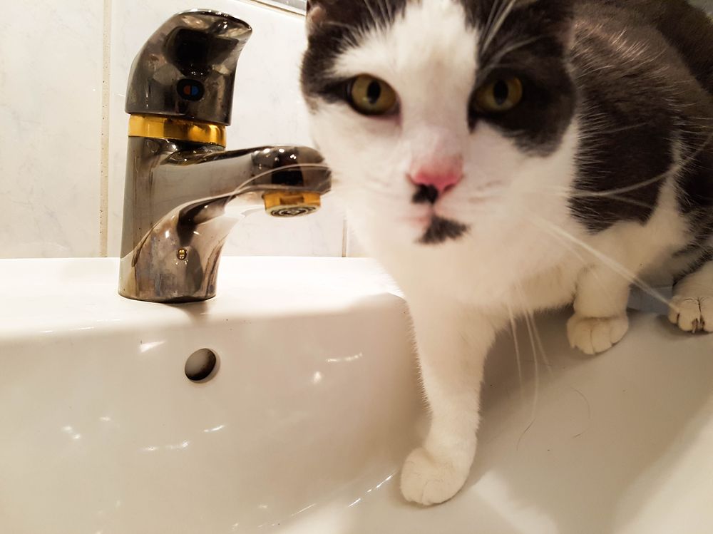 He also wants us to turn on the tap in the bathroom so he can drink straight from it. His owner did buy him a little fontain which he seems to appreciate a lot! However… The tap. In the bathroom…