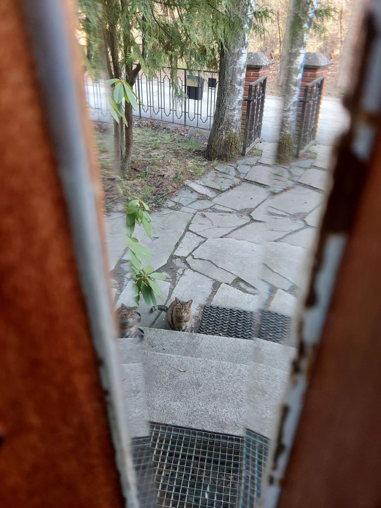 We have an adorable cat that sometimes comes to visit us!